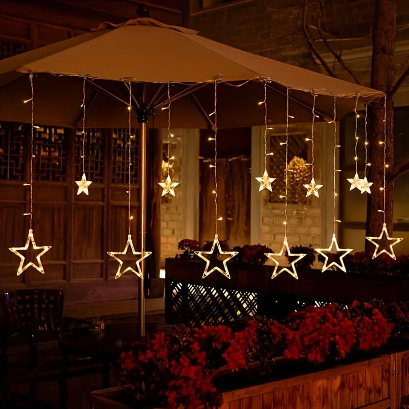 12 Sarkıtlı 120 Led Kumandalı Perde Led Yıldız Figürlü Perde Işık Sarkıt Led
