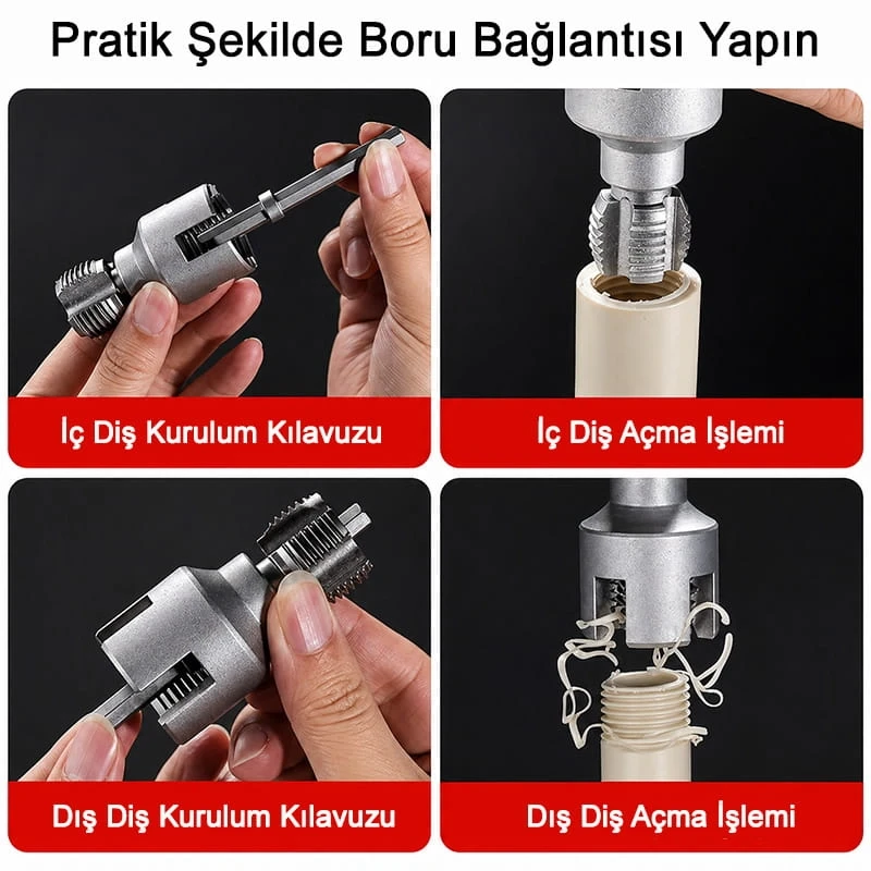 2 Li Set İç ve Dış Plastik Boru Diş Açma Seti 1/2 ve 3/4 İnç Borularla Uyumlu PVC Boru Diş Açma Aparatı
