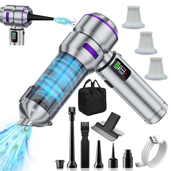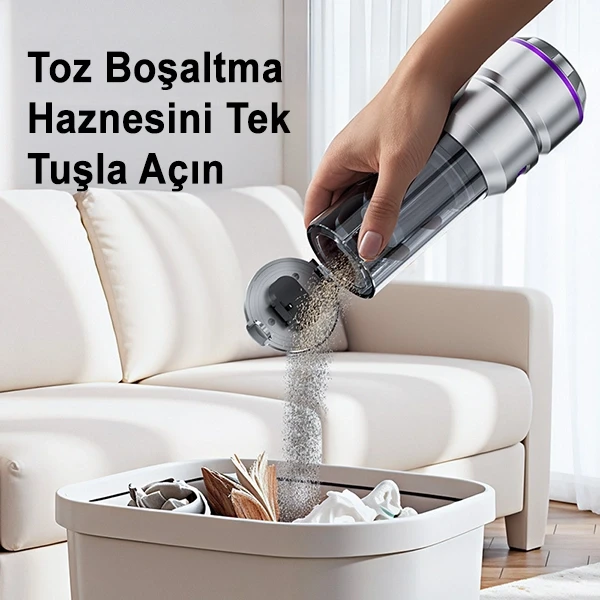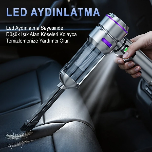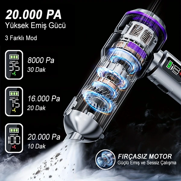 20.000 PA 3 Kademeli Çantalı 16 Parça Profesyonel Ultra Çekim Güçlü Dijital Ekranlı Şarjlı Araç Süpürgesi