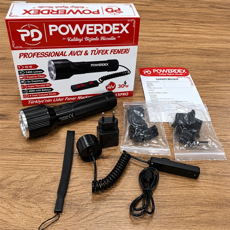 2400 Lümen 30W Profesyonel Zoomlu El Feneri Uzun Menzilli TFK Feneri
