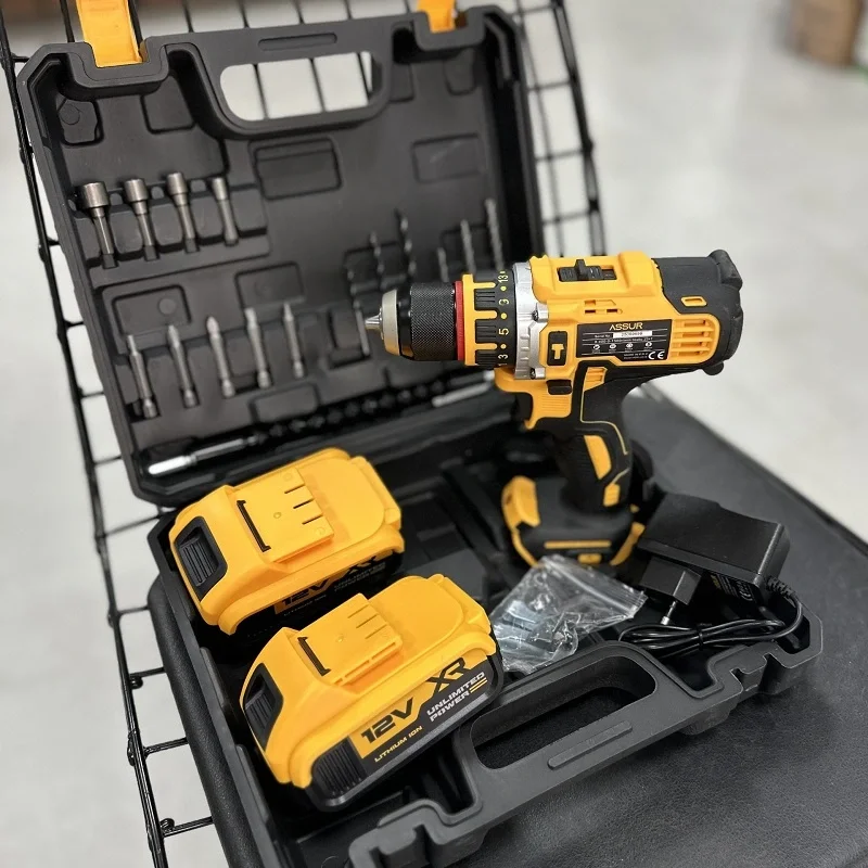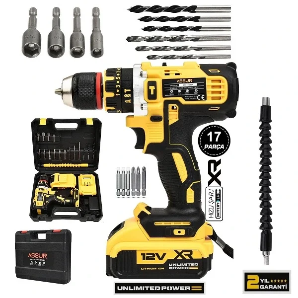 Assur 12V Çift Akülü Vidalama Darbeli Şarjlı Matkap Çelik Mandren