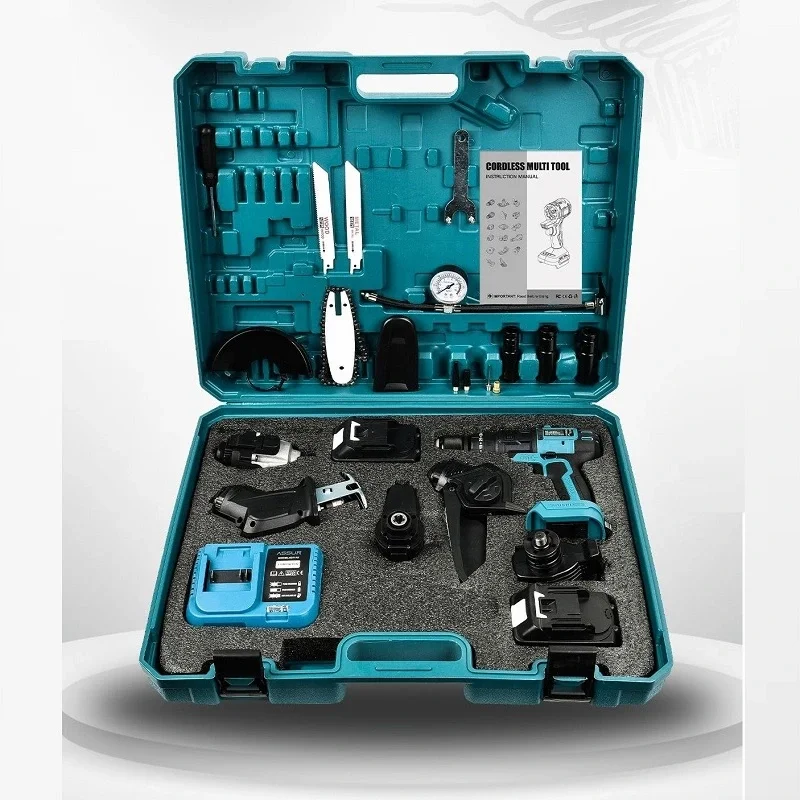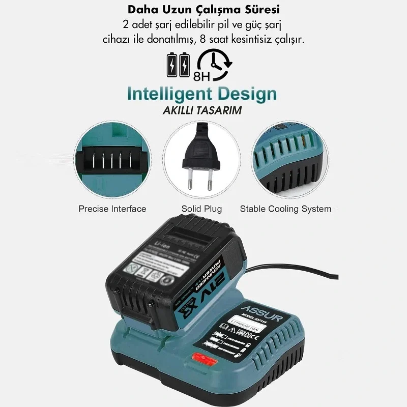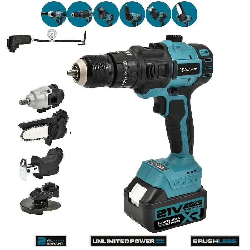 ASSUR 6 Başlıklı Şarjlı Set, ev, bahçe, atölye ve otomotiv gibi çeşitli alanlarda kullanabileceğiniz çok yönlü bir akülü el aleti setidir. Set, bir adet vidalama, bir adet budama testeresi, bir adet taşlama makinesi, bir adet tilki kuyruğu, bir adet somun sıkma ve bir adet hava pompası içerir. 21V XR Li-Ion güçlü bataryası ve kömürsüz motoru sayesinde yüksek performans sunar. 2.0Ah çift aküsü ve 10 pilli dahili bataryası, uzun süreli kullanımlarda bile kesintisiz performans sağlar. 60 dakikalık hızlı şarj süresi, işlerinize hız kazandırır. Metal şanzıman, dayanıklılık ve uzun ömürlü kullanım sağlar. Optimize edilmiş soğutma sistemi, motorların aşırı ısınmasını önler ve performanslarını artırır. 2 konumlu kol, optimum kontrol sağlar. LED aydınlatma, karanlık ortamlarda bile rahat çalışma imkanı sunar. 2 yıl garanti süresi, ürünün kalitesine ve dayanıklılığına olan güveni gösterir.