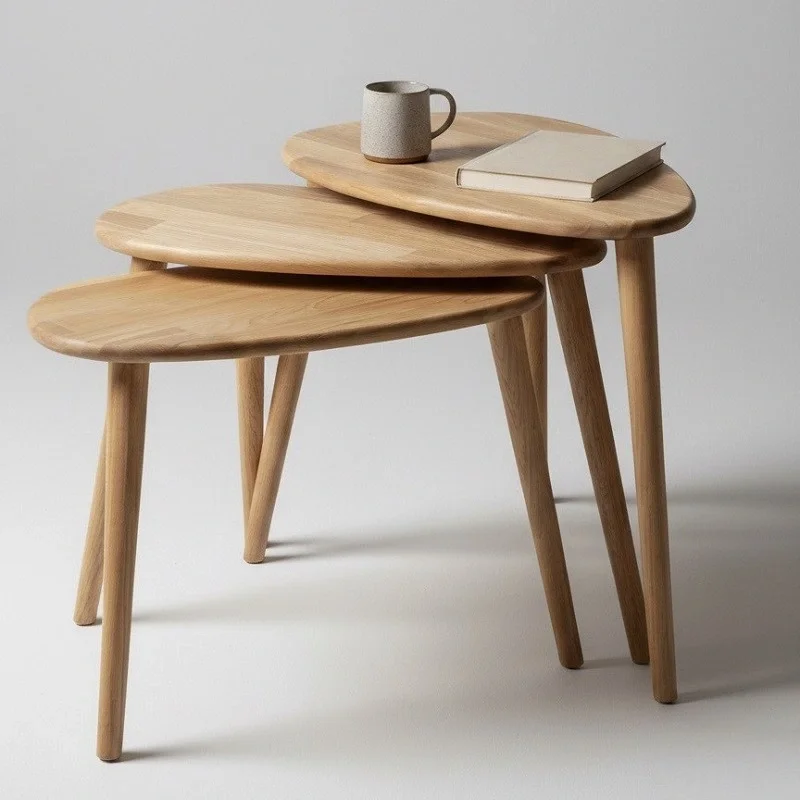 Bemerg Luna 3 Lü Zigon Sehpa Masif Kayın Ahşap Nordic Series