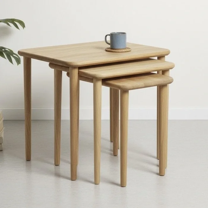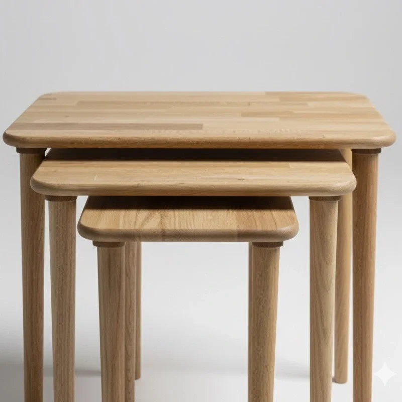 Bemerg Nova 3 Lü Zigon Sehpa Masif Kayın Ahşap Nordic Series