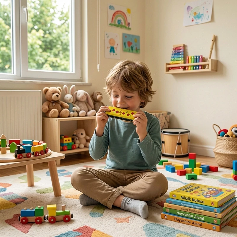 Desenli Mızıka 16 Delikli Çift Sıralı Renkli
