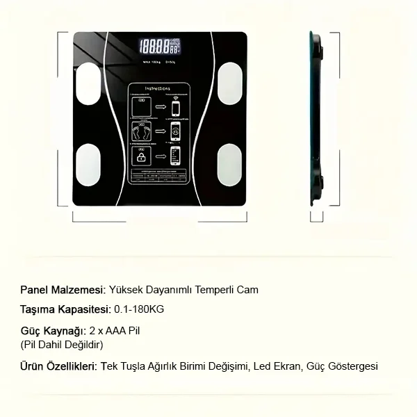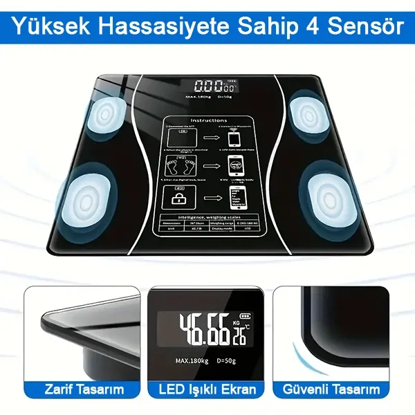 Dijital Baskül Yağ Su Kas Vücut Kitle Endeksi Kilo Ölçer Tartı Vücut Analiz Cihazı Akıllı Tartı