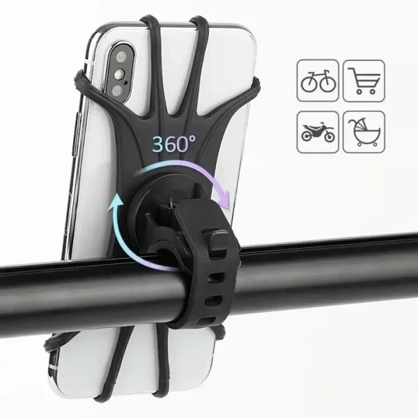 Evrensel bisiklet standı: süper elastik silikon kayış, tüm akıllı telefonları 4.0 inçten 6.0 inç'e kadar ekran boyutlarıyla güvenli bir şekilde tutabilir.