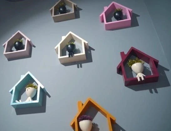 Ev Şekilli Dekoratif Duvar Rafı Pembe