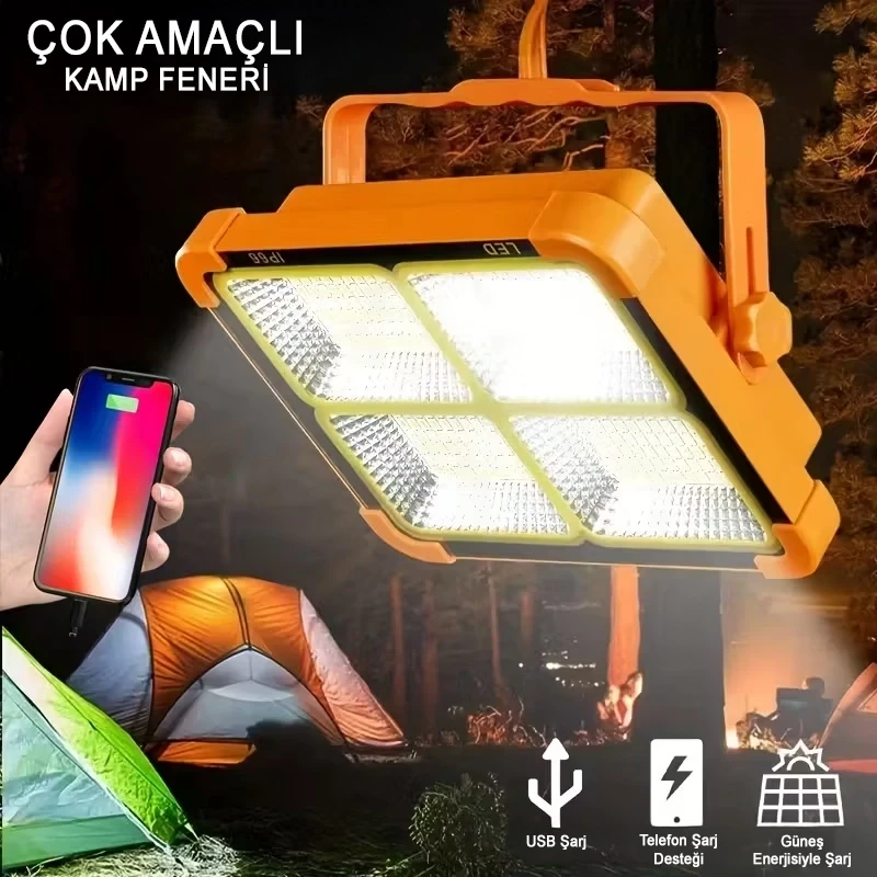 Güneş Enerjili Şarjlı Su Geçirmez Kamp Lambası 8 Saat Çalışan 4000 mAh Solar Kamp Lambası