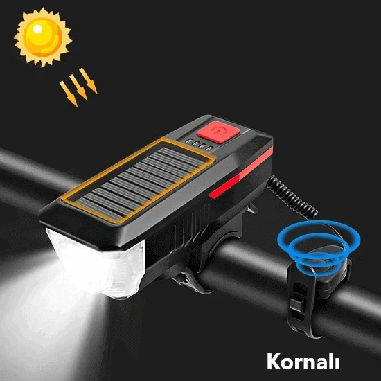 Su Geçirmez Güneş Enerjili Solar Bisiklet Feneri Usb Şarjlı