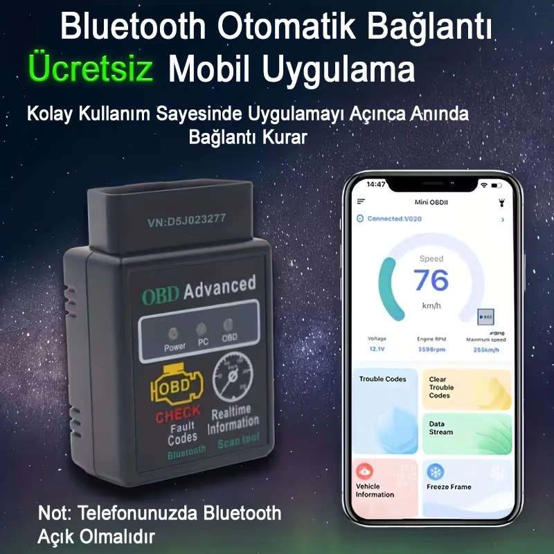 HHOBD OBD2 V2.1 Android Bluetooth Özellikli Araç Arıza Tespit Cihazı
