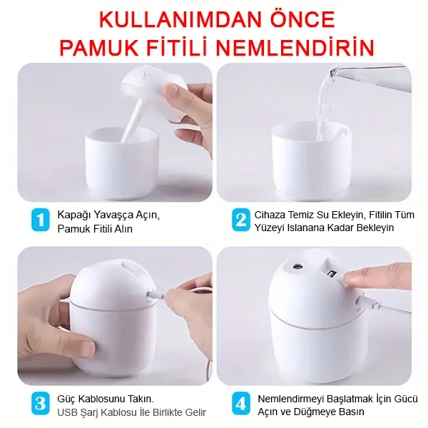 Işıklı Kuru Havayı Azaltan ve Aromaterapi Özellikli Ultrasonik Hava ve Oda Nemlendirici Ultrasonik