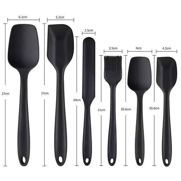 Isıya Dayanıklı Yanmaz Yapışmaz Silikon Spatula Seti 6 Parça Siyah • Isıya Dayanıklı Yanmaz Yapışmaz Yüksek kaliteli silikon malzemeden üretilmiştir  BPA içermeyen Sağlığa zararsız silikon maddeden üretilmiş olup iç kısmında çelik malzeme kullanılmıştır Pişirme malzemelerinin çizilmesini ve zarar görmesini önler