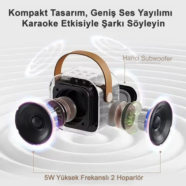 • 1. 4'ü 1 arada işlevsellik: bu uyumlu mini karaoke makinesi, yüksek kaliteli ses kalitesini kablosuz bir mini mikrofon ile birleştirir ve profesyonel ses efektleri sağlar. Kolay tek tuşla işlem ve birinci sınıf deri tutamak ile kullanışlı ve taşınabilir.