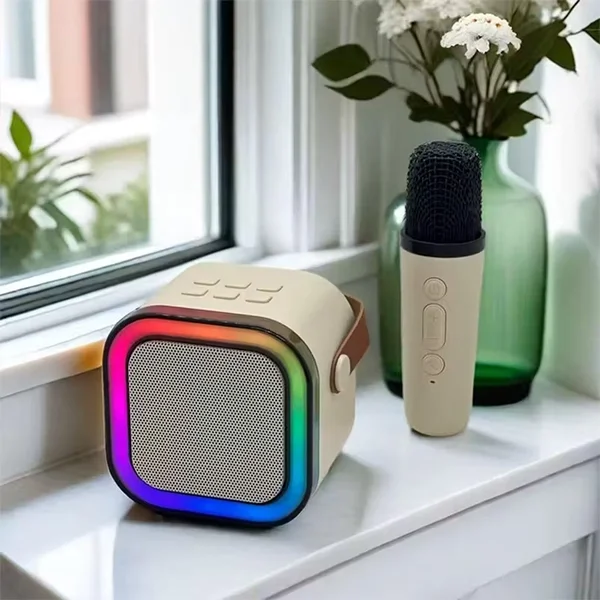 K12 çift mikrofon Karaoke Bluetooth hoparlör RGB ışık iki 5W hoparlörler ses Subwoofer Boombox destek çoklu giriş modları
