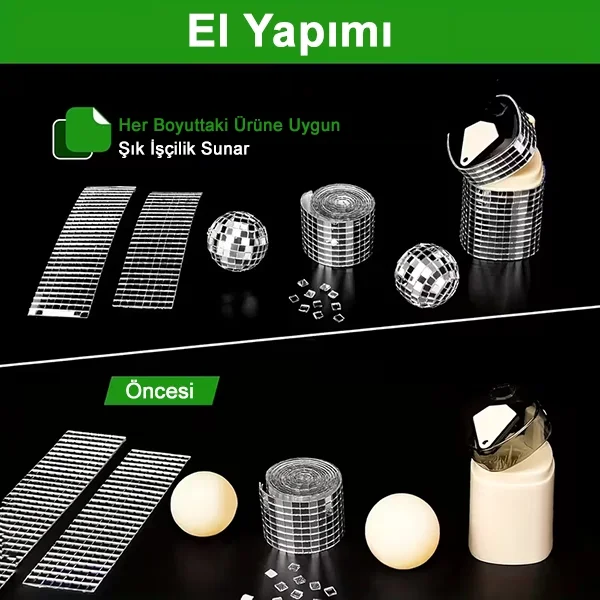• Malzeme: Kaliteli gümüş renkli aynalı mozaik taşlardan üretilmiştir.