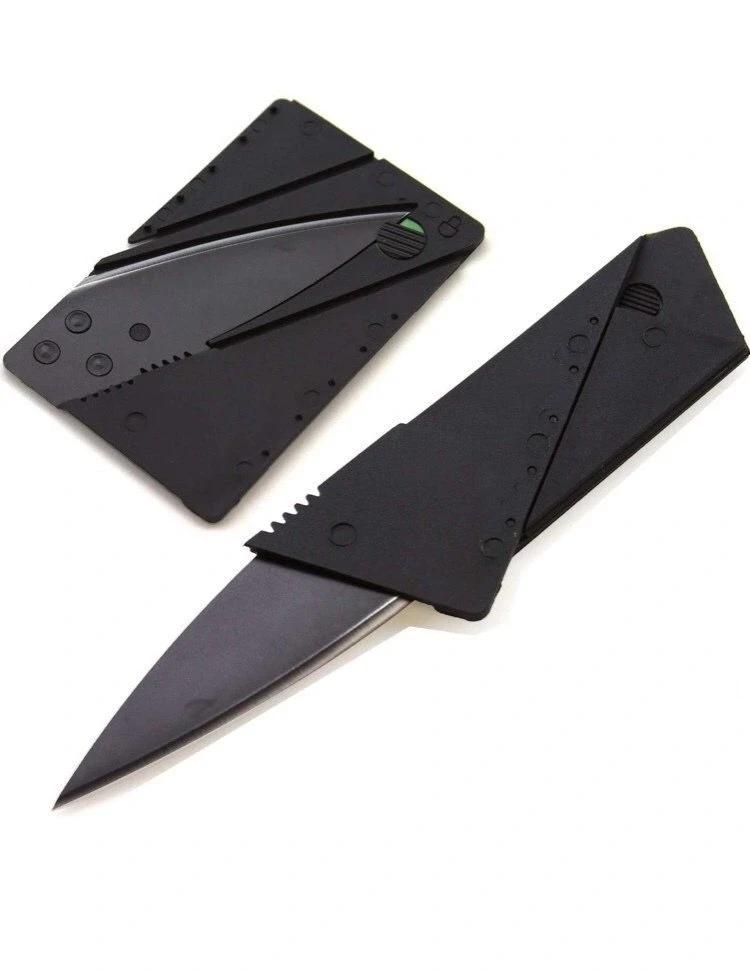 Kredi kartı şeklinde ve inceliğinde olan bu ürünü cüzdanınızda ve cebinizde rahatlıkla taşıyabileceksiniz. Bir an olsun yanınızdan ayırmak istemeyeceğiniz bu tasarım harikası bıçak dayanıklı malzemeden üretilmiş olup bıçak kısmı paslanmaz çelikten üretilmiştir. Katlandığında kredi kartı ölçülerine sahip olan bu ürün açıldığında ise standart bir bıçak görevi görür.