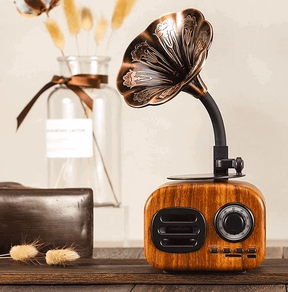 Nostaljik gramofon radyo nostaljik görünümü ile nostalji tadında müzik dinleyebilirsiniz.