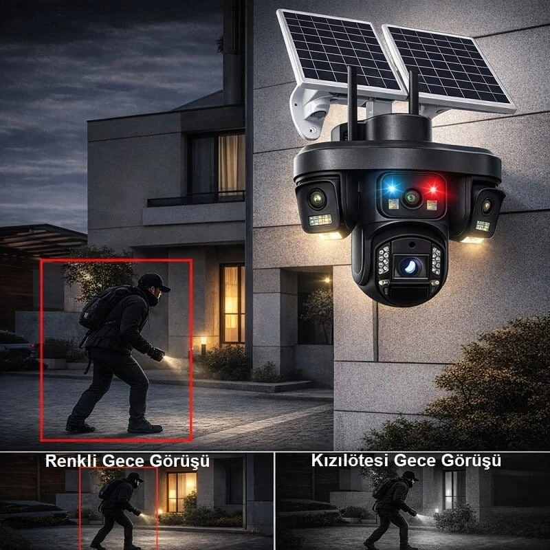 O-Kam Premium 4G 12MP SIM Kartlı 4 Kameralı 4 Görüntülü Çift Solar Panelli Renkli Ledli Gece Görüşlü Güvenlik Kamerası