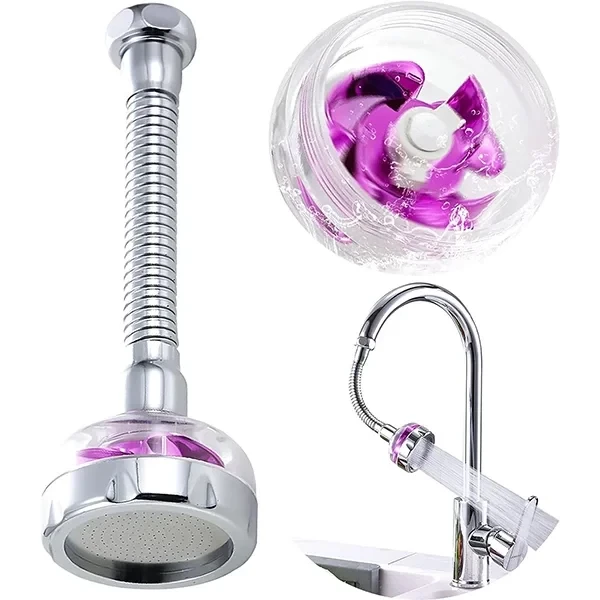 Pervaneli Hortumlu Esnek Musluk Başlığı, 360 derece dönebilen esnek hortumu ve suyu yumuşak şekilde dağıtan pervane sistemi sayesinde hem suyun yönünü kolayca ayarlamanızı sağlar hem de su faturasını düşürmenize yardımcı olur