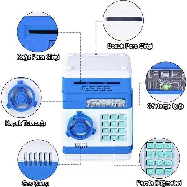 Şifreli ATM Kumbara Kasa Otomatik Mavi