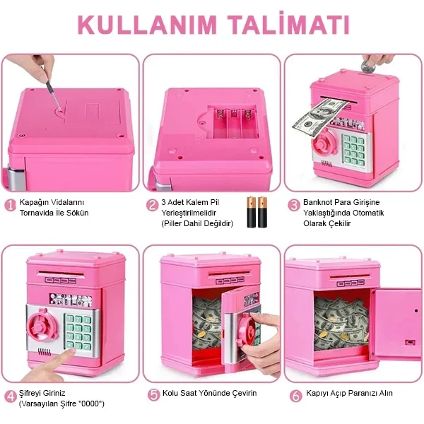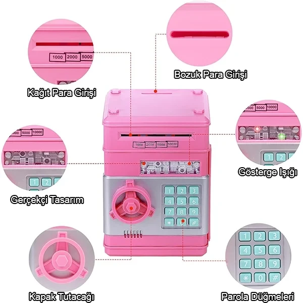 Şifreli ATM Kumbara Kasa Otomatik Pembe