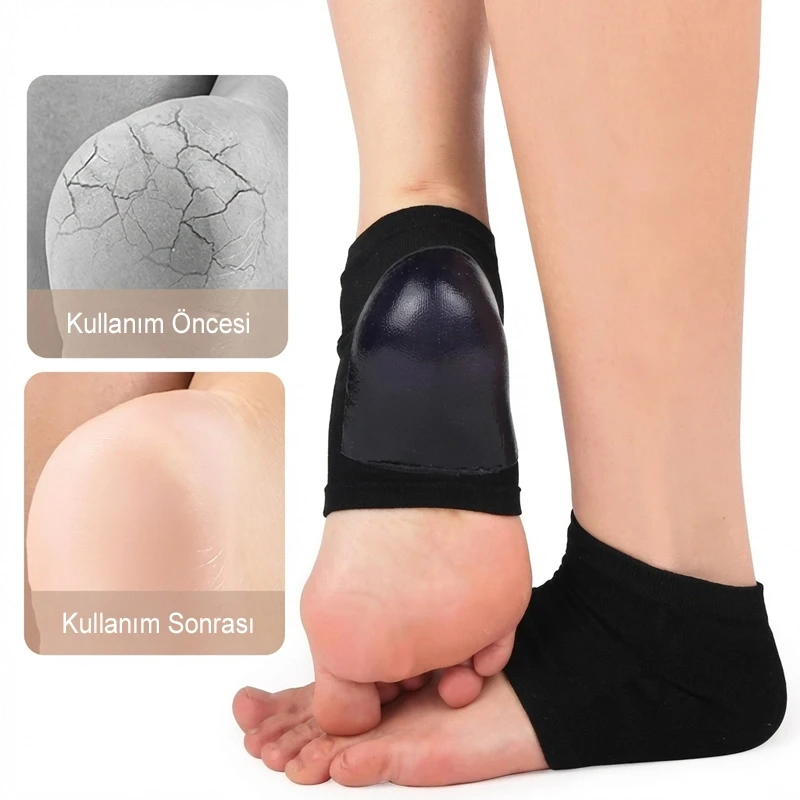 Siyah 1 Çift Silikon Nemlendirici Topuk Çorabı Çatlak Nasır İçin Nemlendirici Topuk Çatlak Giderici Çorap