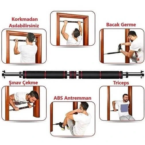 Evden spor yapmanızı kolaylaştıran özellikle salgın sürecinde sağlığımızı ve formumuzu korumamıza yardımcı olan kapı ve koridor arası ayarlanabilir kaliteli dayanıklı çelik barfiks çubuğu