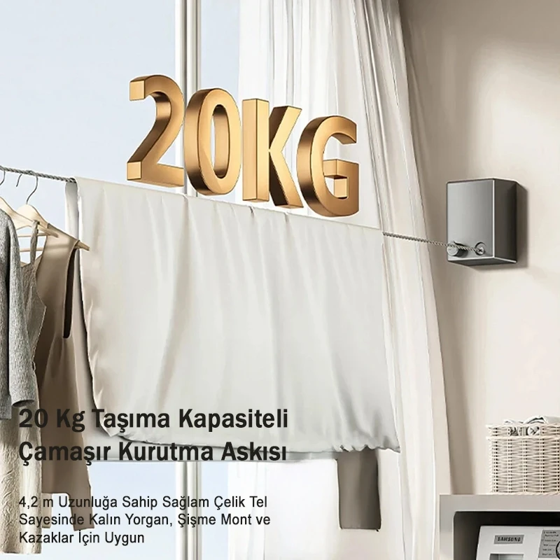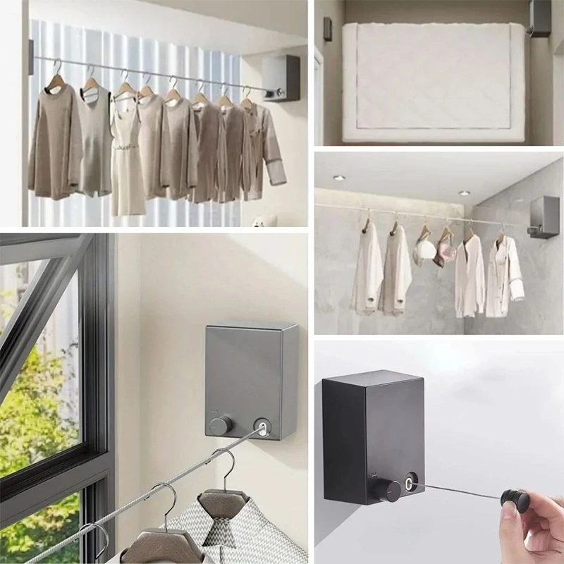 Uzatılabilir Geri Çekilebilir Çamaşır Kurutma Askısı Pratik Balkon Çamaşır İpi Paslanmaz Çelik Tel